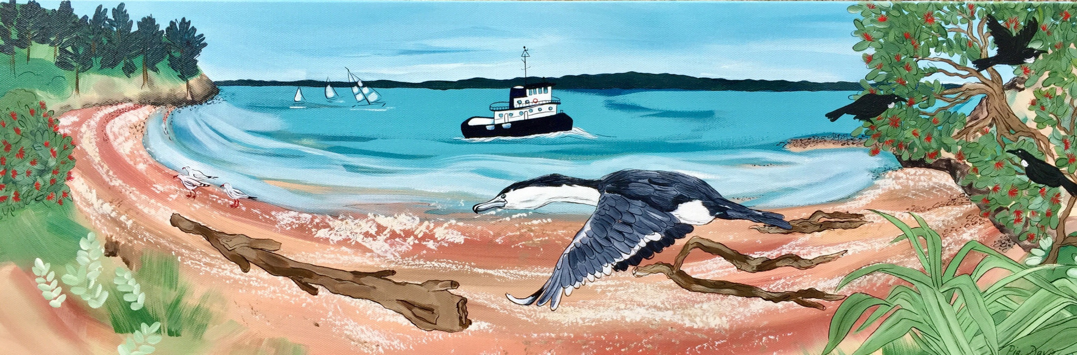 Pia says “I grew up in a creative family: Mum owning a contemporary art gallery and Dad making acoustic guitars. Completing a Bachelor of Fine Arts from Otago majoring in painting in 2005, I have continued to make and exhibit and became a full-time artist in 2014”.